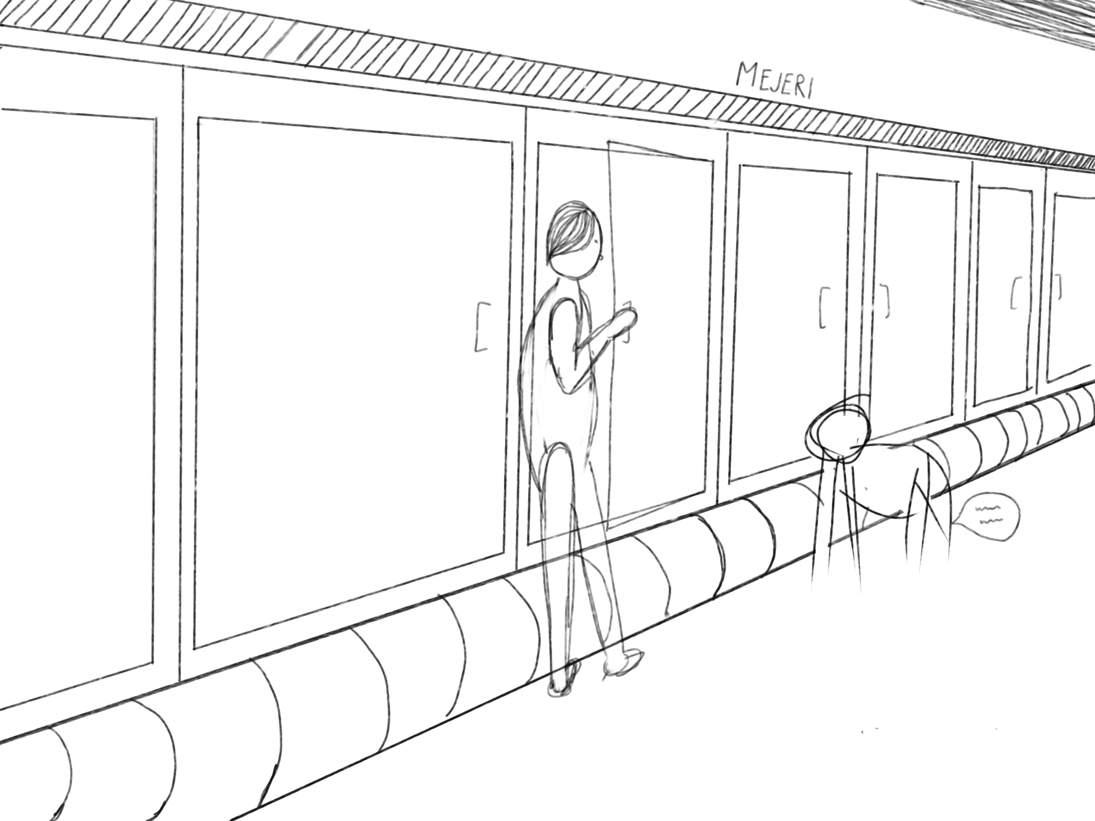 Projektet börjar nå en fas där robotarna ska testas i två scenarier. Den ena i en butik, där robotarna är organisationsägda, och en annan där robotarna är i en trädgård och således privatägda. I detta stadiet samlades inspirationsmaterial för scenarierna (vilket vi inte kan posta här pga copyright) och nedan är en skiss på idén om att robotar agerar där människor handlar.