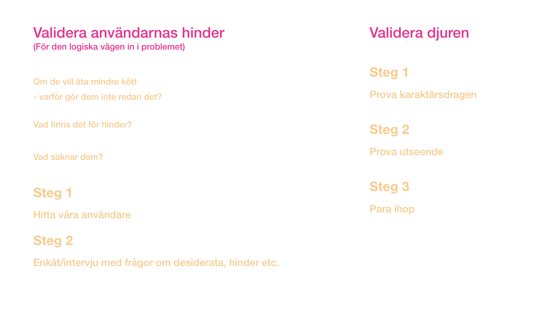 För att återgå till namnen, som nämns på punkt 3, heter de i detta stadiet produktnamn. Robotkon heter Biff, robotgrisen heter Bacon, robotfåret heter Kotlett och robotkycklingen heter Nugget. Dessa namn, till skillnad från de tidigare, väckte tankar på ett snabbare sätt och informanter behövde inte googla.