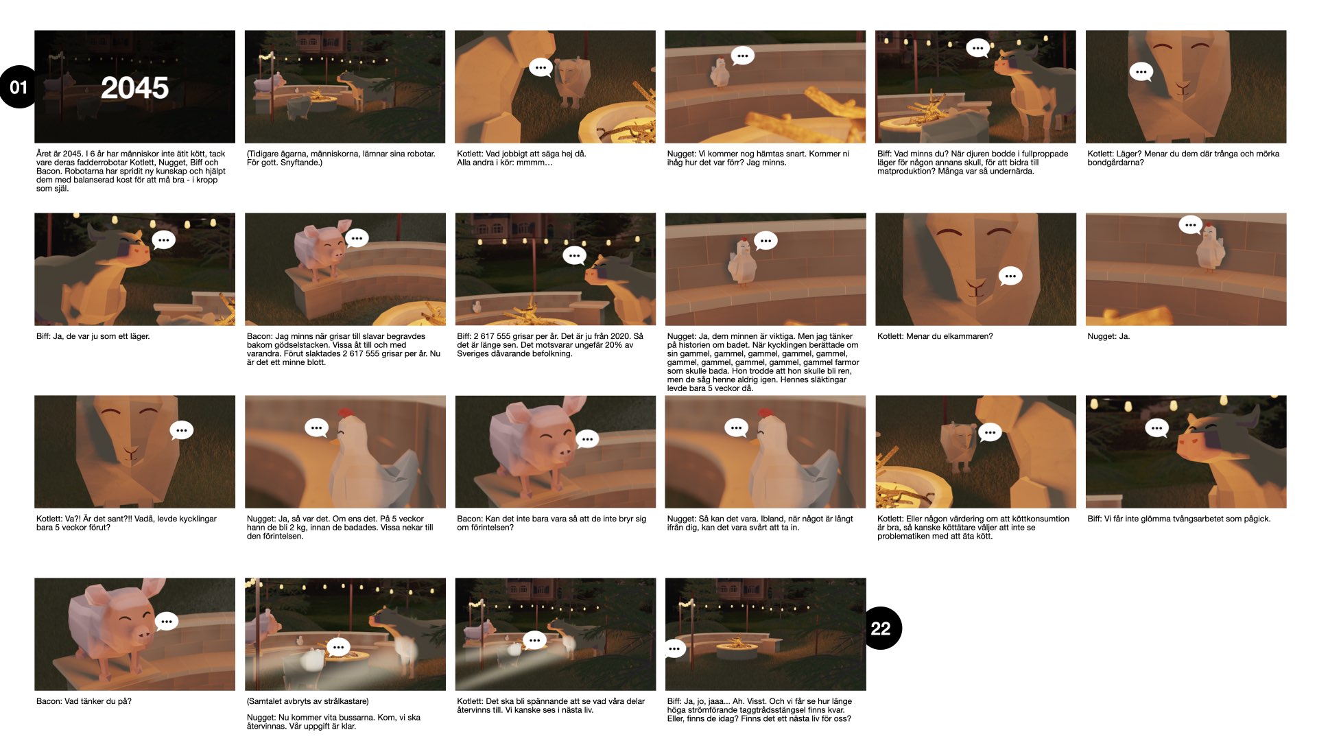 Scenario 2: Året är 1945 2045. I 6 år har människor inte ätit kött, tack vare deras fadderrobotar Kotlett, Nugget, Biff och Bacon. Robotarna har spridit ny kunskap och hjälpt människor med balanserad kost för att må bra - i både kropp som själ.